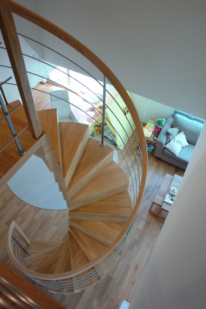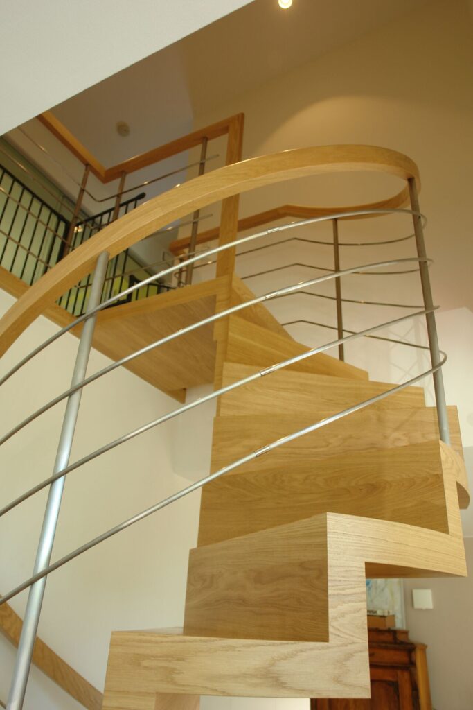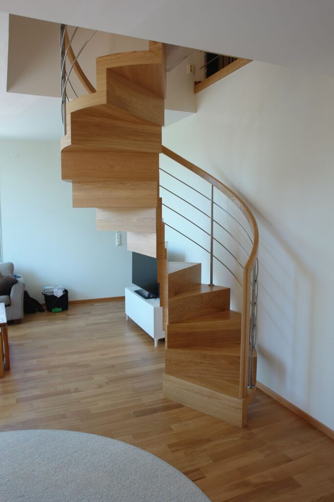 Eine Spiralfaltwerktreppe mit markantem Geländer welches an eine Schiffsreling erinnert – sie vereint Raumökonomie und nautisches Flair, bietet spiralförmig verdrehte Stufen, die jeden Blick führen. Ideal für Designliebhaber, die auf besondere Details und stilvolle Akzente setzen.