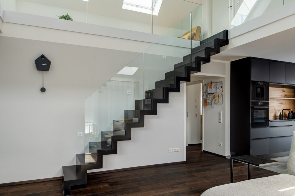 Schwarze Corian Faltwerktreppe